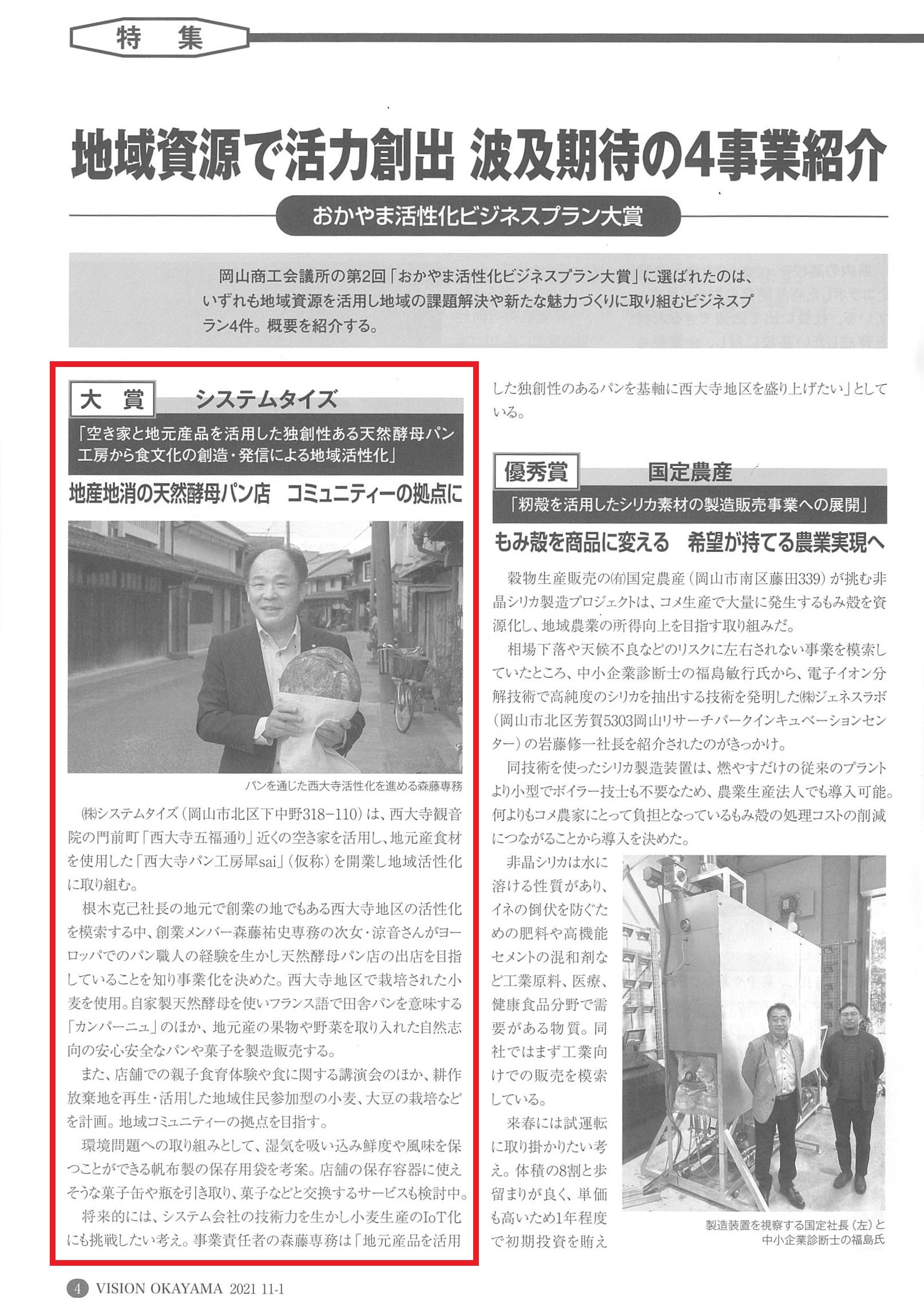 この度、経済情報誌『VISION OKAYAMA』に