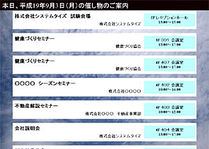 催事情報データベースと連携した、液晶ディスプレイに案内表示。