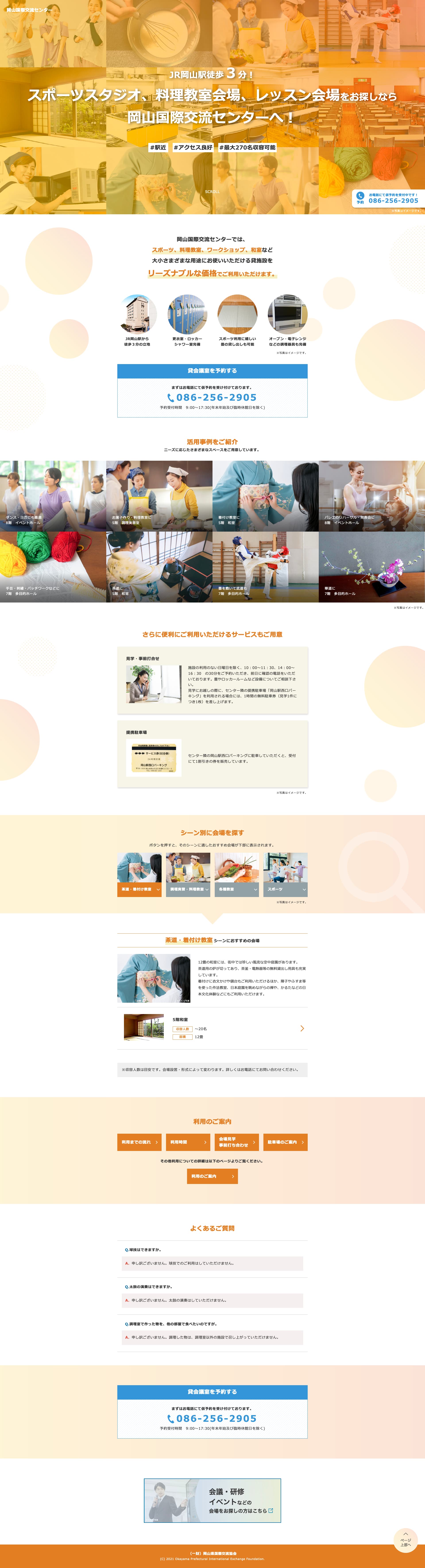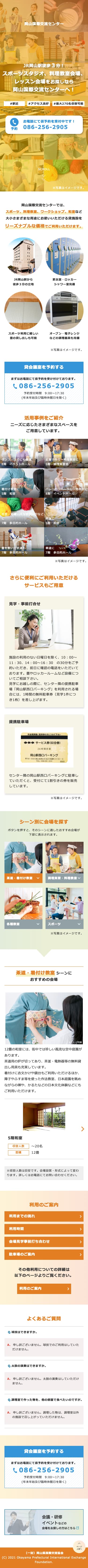岡山国際交流センター様 スポーツスタジオ・料理教室会場・レッスン会場特設ページ webサイト http://www.opief.or.jp/oicenter/lp/lesson/ ホームページへ 制作実例一覧