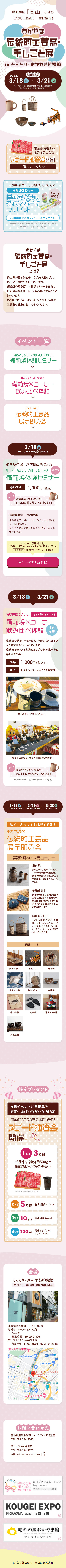 公益社団法人 岡山県観光連盟様 おかやま伝統的工芸品・手しごと展LP webサイト https://www.okayamakan.or.jp/lp/tokyo-kougei2023/ ホームページへ 制作実例一覧