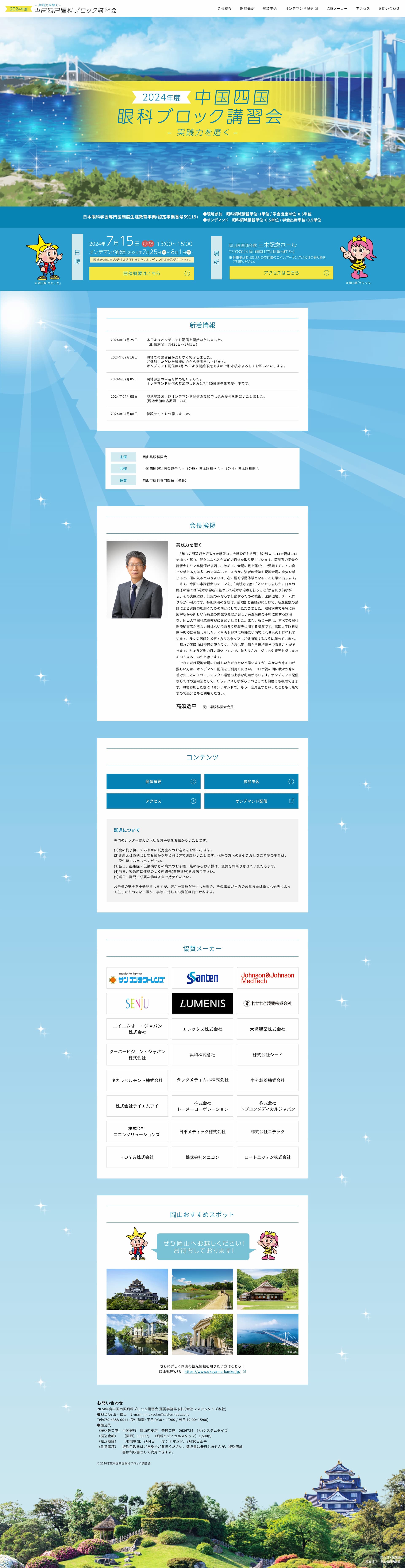 岡山県眼科医会様 2024年度中国四国眼科ブロック講習会特設サイト